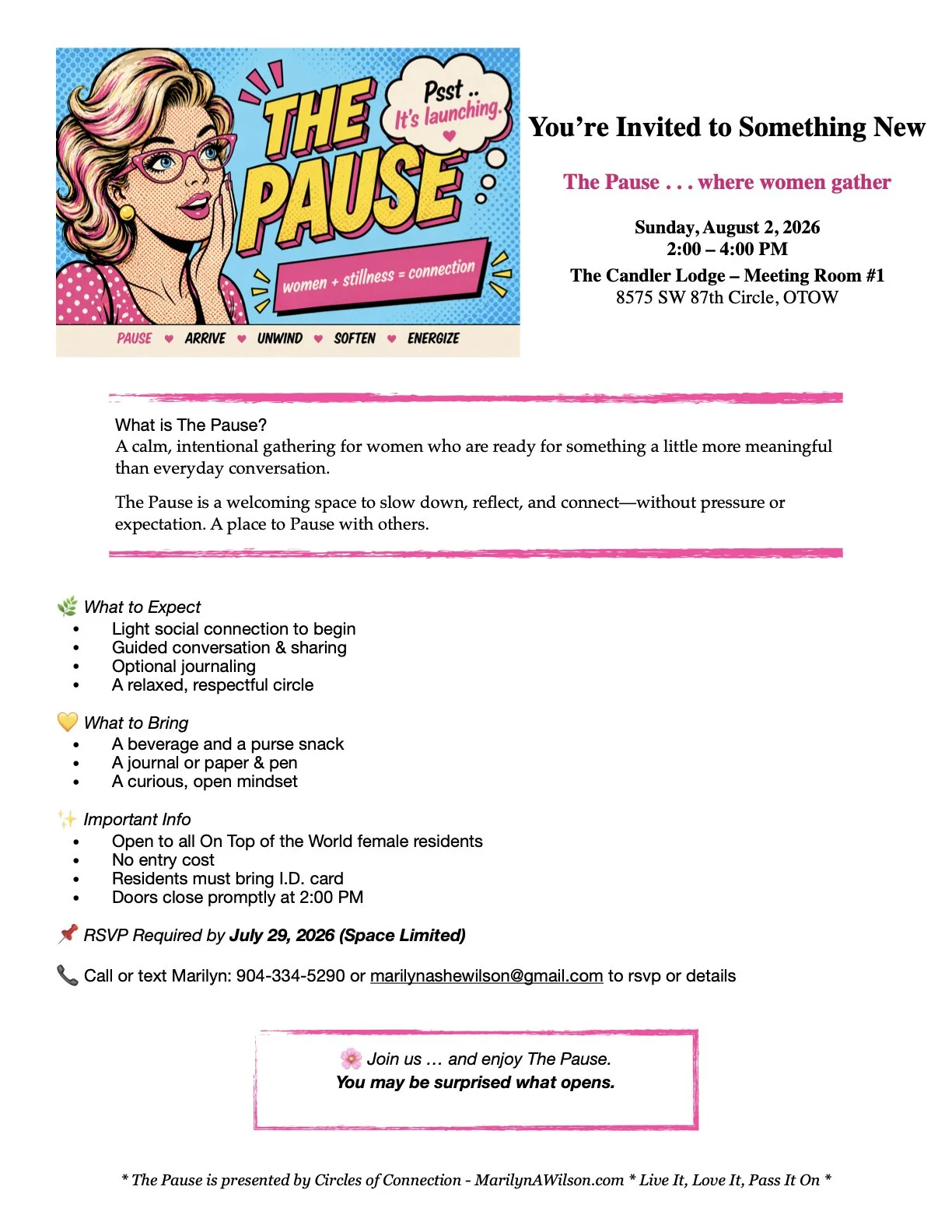 Women forget to Pause, to Connect, to Rejuvenate. The Pause offers the space to Belong to a group of women that are Remembering the ways of women .. gathering, circling, connecting.